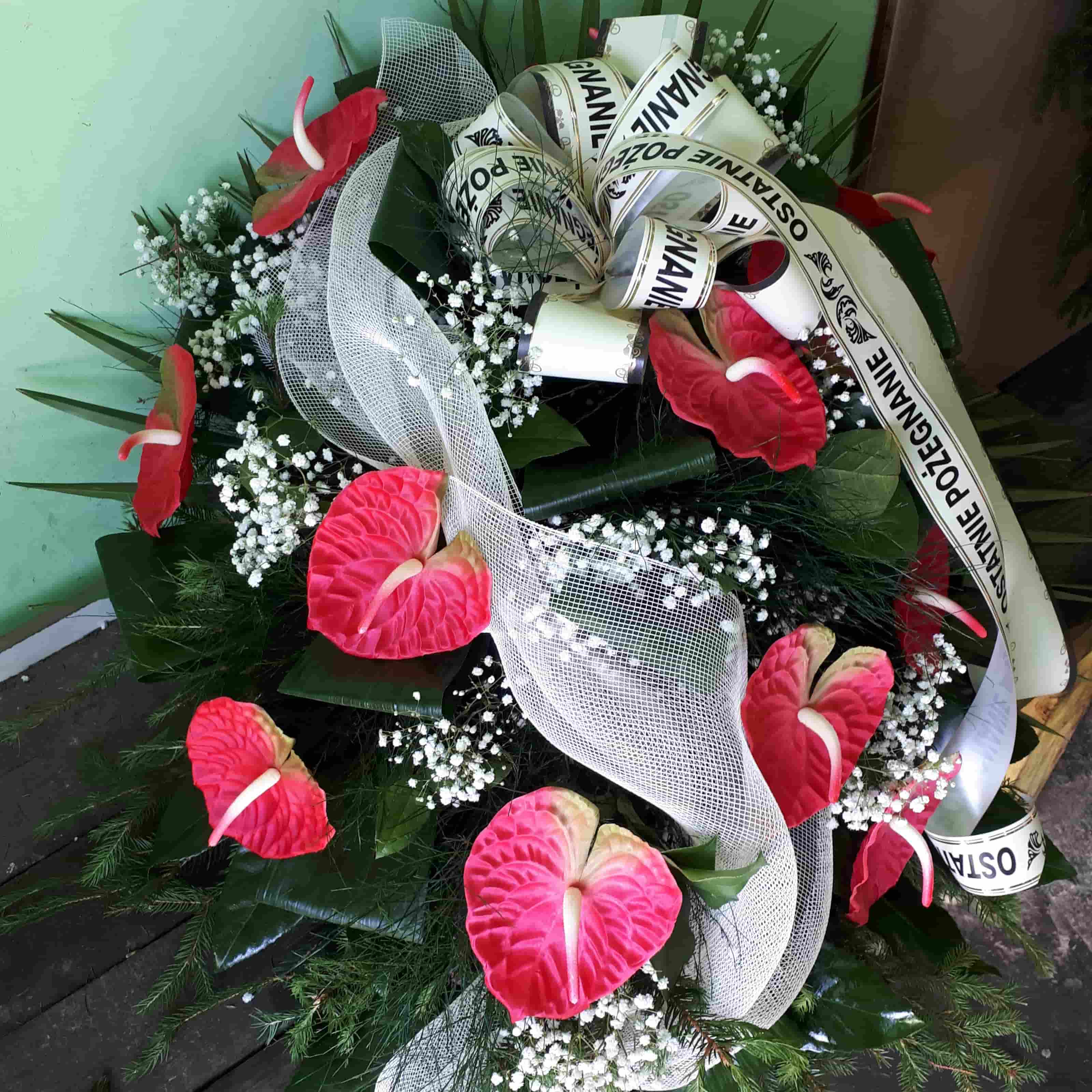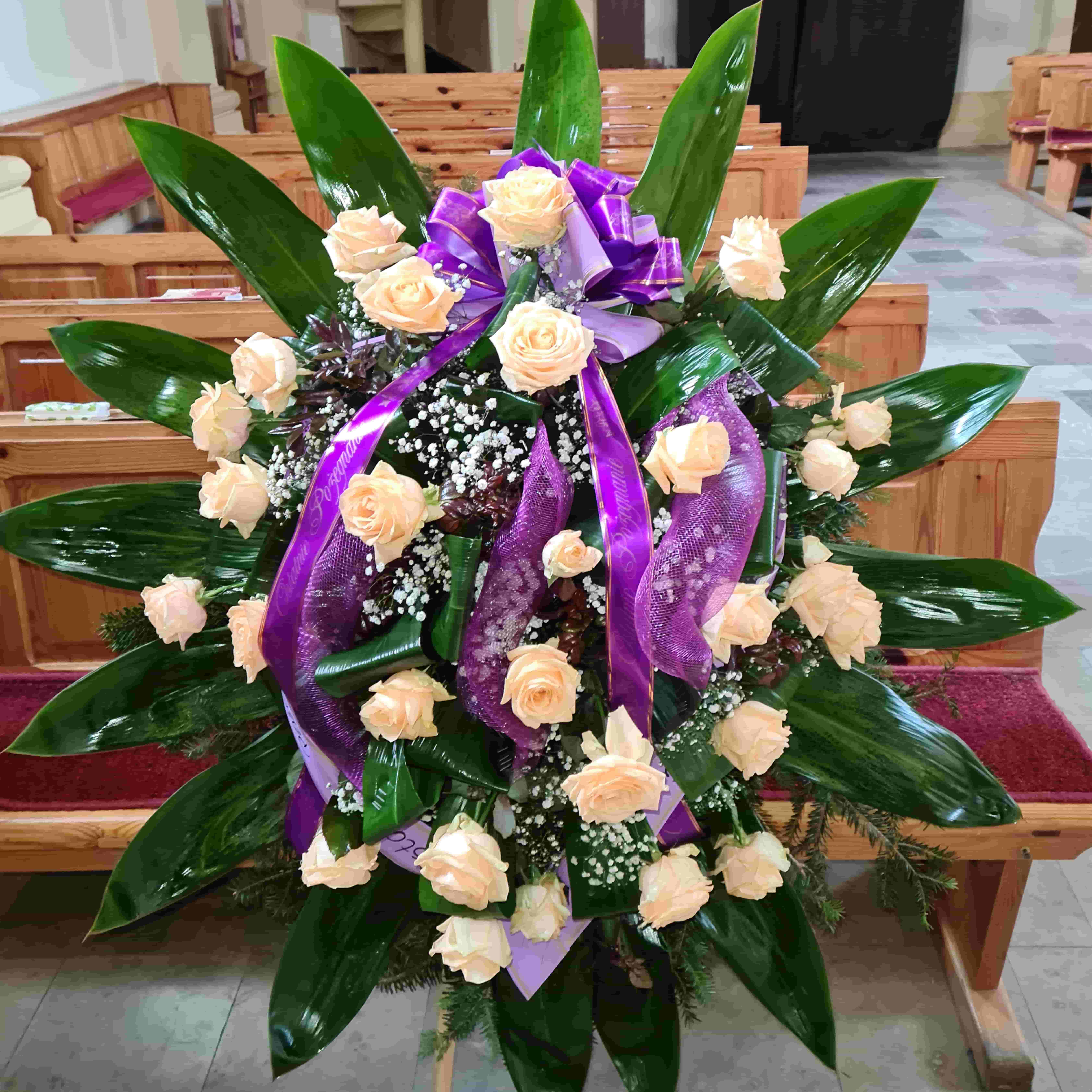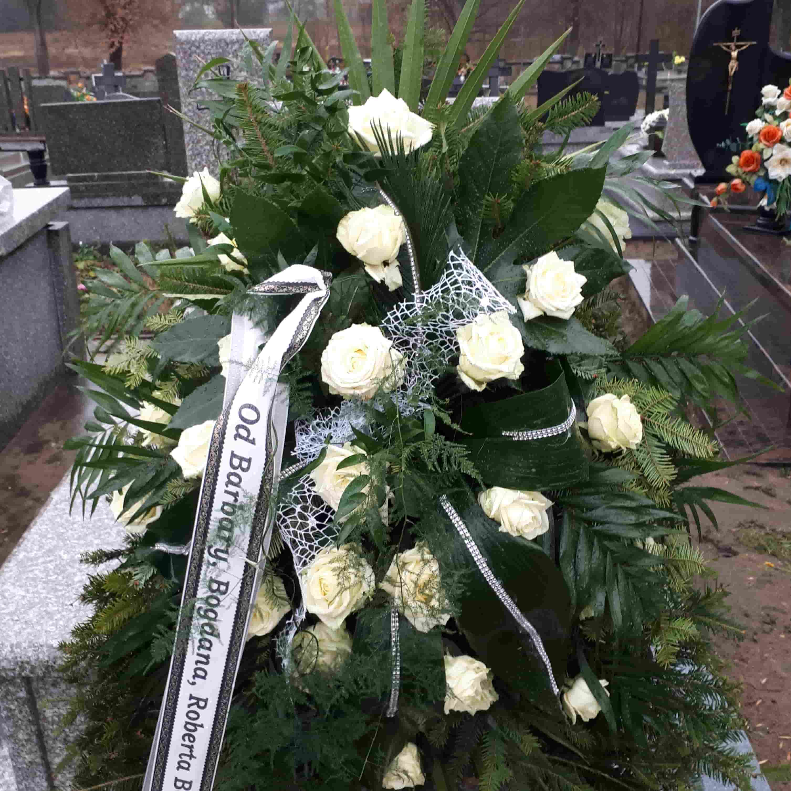 Zakład pogrzebowy "Niebo" dba o oprawę wizualną ceremonii pogrzebowej. Mogą Państwo zamówić u nas zarówno kwiaty na wieko trumny, wiązanki oraz okazłe wieńce. W asortymnencie zanajdują się również stroiki oraz wianki do urn. Poniżej przykłady realizacji pogrzebowych kompozycji kwiatowych przygodtowanych przez nasz zespół.